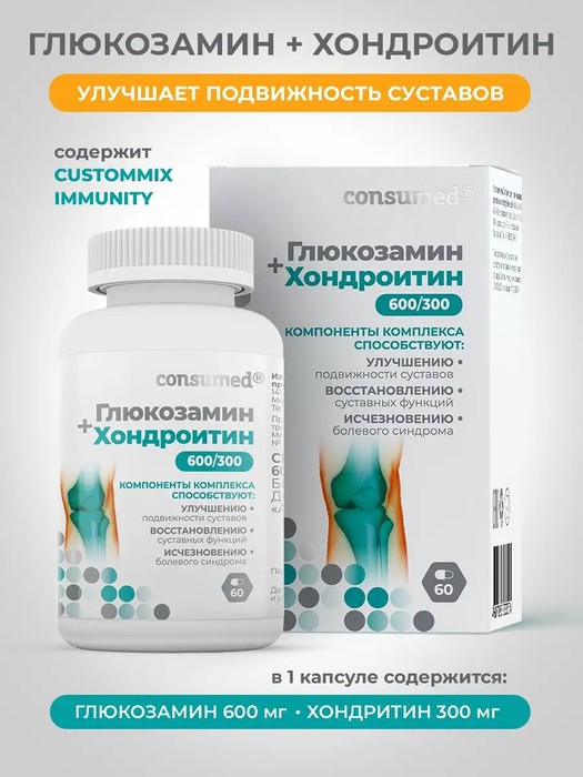 30.08.2026#Розничная цена от 1100. Рекомендуется в качестве источника глюкозамина, хондроитина, дополнительного источника витаминов В1, В2, В6, В12, биотина, С, Е, РР, фолиевой кислоты, D - пантотената кальция, цинка, селена, марганца.
