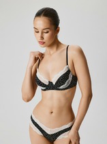 Бюстгальтер push-up на каркасах Vintage выполнен из кружева с ажурным орнаментальным рисунком и прямым краем. Чашки на подкладке из дубляжа с хлопком. Современный образ, безупречная посадка на фигуре и дополнительный объем – визитная карточка модели.