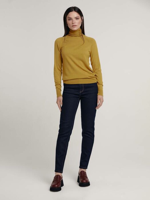 ESENIA Джемпер женский с воротом мыс - Горчичный, Чёрный