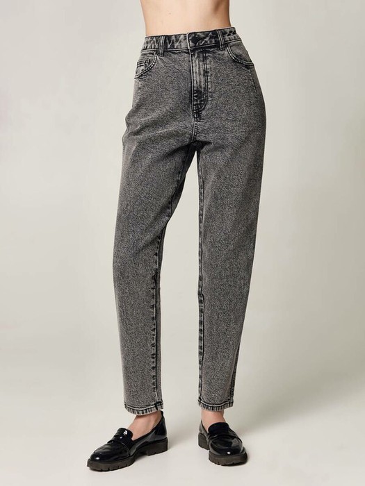 Джинсы mom с высокой посадкой подойдут девушкам с разными типами фигуры: благодаря высокой посадке, акцентным вытачкам по карманам, прилегающему крою в области бедер и слегка зауженным штанинам модель визуально моделирует силуэт.