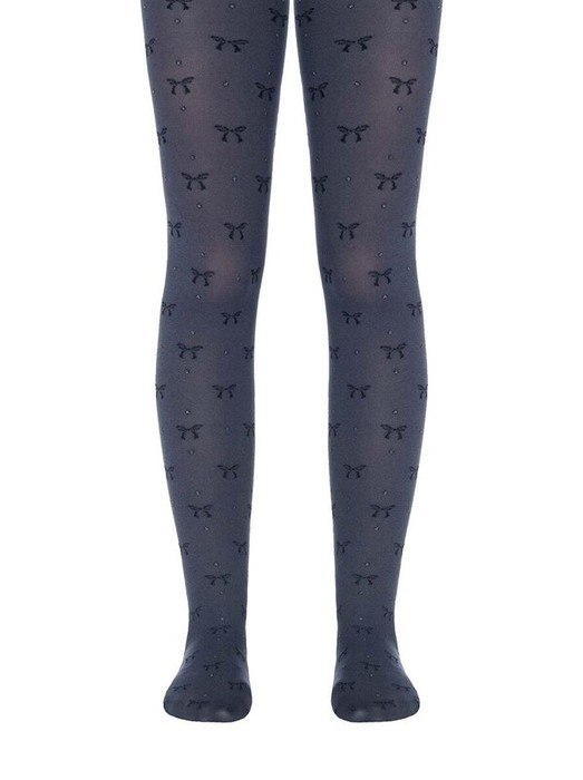 Плотные эластичные меланжевые фантазийные колготки 50 DEN из нитей микрофибры и LYCRA. Рисунок "бантики" выполнен из черной полиамидной нити, рисунок "точки" выполнен из люрексовой нити, комфортный плоский шов, уплотненный мысок.