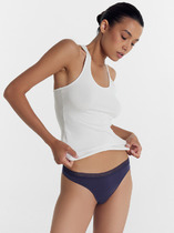 Трусы женские STRING с низкой посадкой из однотонного трикотажного полотна. Талия обработана эластичной тесьмой плоским швом. Ножки обработаны узкой эластичной тесьмой плоским швом. Ластовица двойная отрезная спереди и сзади.