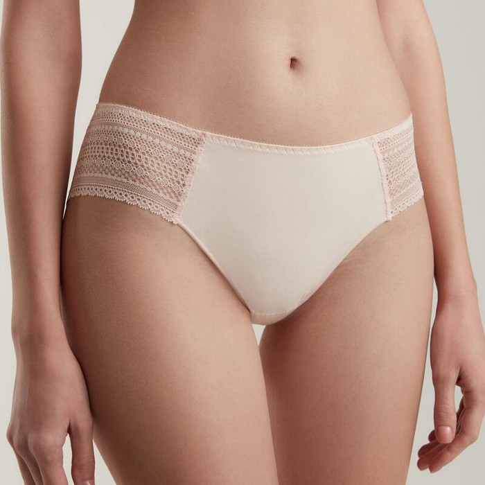 Трусы слип со средней линией талии Vintage RP3074 выполнены из кружева с ажурным орнаментальным рисунком и прямым краем. Современный образ, безупречная посадка на фигуре и абсолютный комфорт – визитная карточка модели.