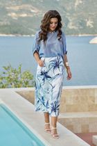 "Юбка-midi из экокожи прилегающего кроя с декоративными патами по бокам идеально подойдет для создания стильного осеннего аутфита. Модель легко дополнит ваш деловой образ, а также станет прекрасным вариантом для вечернего выхода в свет.