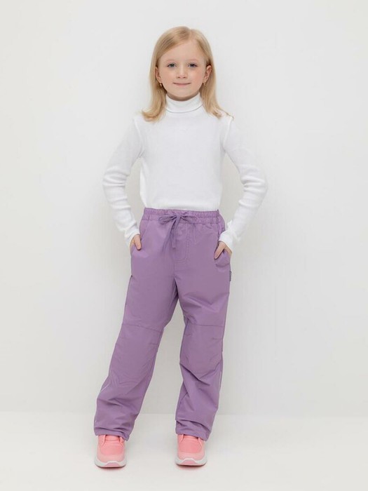 Ветровочные брюки из мембранной ткани с дополнительной тефлоновой обработкой. Данный вид обработки предохраняет изделие от загрязнения и лучше отводит влагу. Подклад из 100% хлопка. Эластичный пояс утягивается при помощи шнурка. Ширина низа регулируется утяжкой со стопперами. Во всех изделиях верхнего ассортимента для безопасности ребенка предусмотрены светоотражающие элементы.