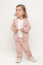 Брюки для девочки из мягкого петельчатого трикотажа. В составе 80% натурального хлопка и 20% полиэстера, при этом полиэстер ввязан внутрь по особой технологии и не соприкасается с кожей. Эластичный пояс на резинке регулируется по ширине с помощью шнурка, по бокам два удобных кармана, внизу эластичные манжеты.