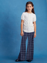 Трикотажные брюки для девочки из петельчатого футера. Эластичный пояс на резинке регулируется по ширине с помощью шнурка, по бокам два удобных кармана, внизу эластичные манжеты.