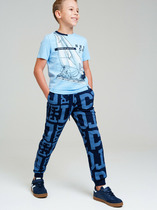 Брюки для мальчика из высококачественного трикотажного полотна. Пояс на резинке регулируется по ширине с помощью шнурка. По бокам два удобных кармана. Внизу эластичные манжеты.