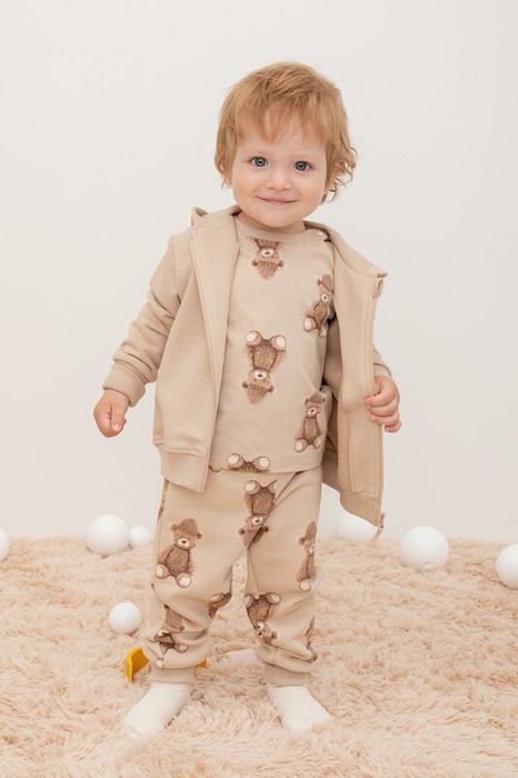 Трикотажные брюки для мальчика из петельчатого футера. В составе 80% натурального хлопка и 20% полиэстера, при этом полиэстер ввязан внутрь по особой технологии и не соприкасается с кожей. Эластичный пояс на резинке регулируется по ширине с помощью шнурка,внизу эластичные манжеты.