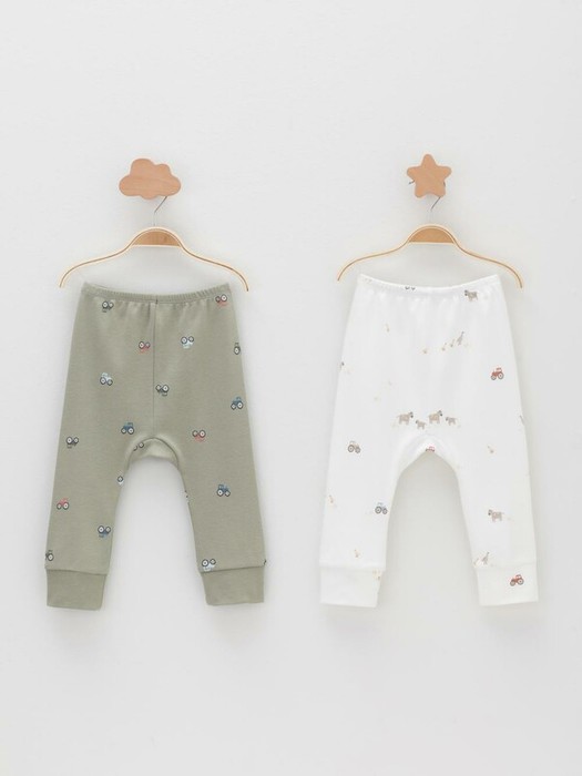 Брюки для новорождённых из мягкого эластичного трикотажа интерлок, произведённого из натурального хлопка. В упаковке 2 штуки. Пояс на резинке. Оригинальная набивка выполнена из стойких гипоаллергенных текстильных красителей. Все трикотажные полотна производятся в соответствии с нормами швейцарского сертификата ЭкоТекс.