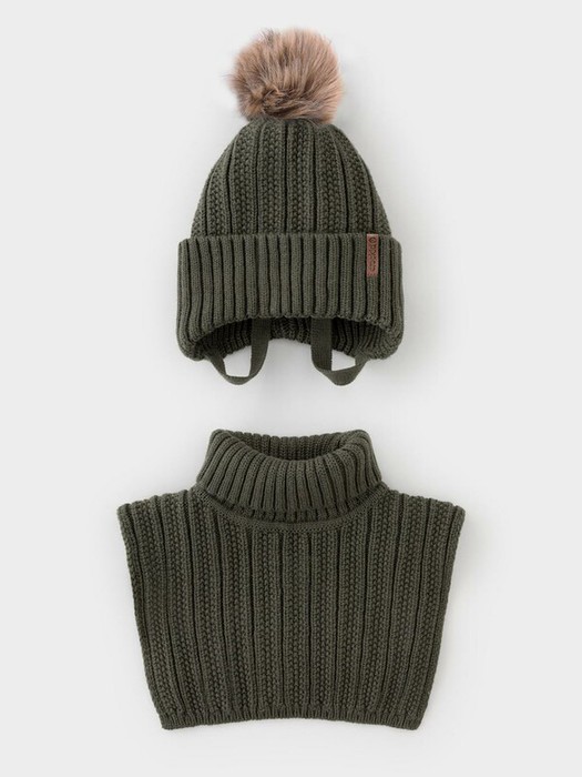 Комплект для мальчика: шапка и манишка из полушерстяной пряжи. Шапка на завязках с синтепоновым утеплителем. Подклад из натурального хлопка. Полностью закрывает голову, уши и шею, защищая ребёнка от холодного воздуха и ветра. На макушке помпон. Манишка с высоким воротником с эластичным отворотом.