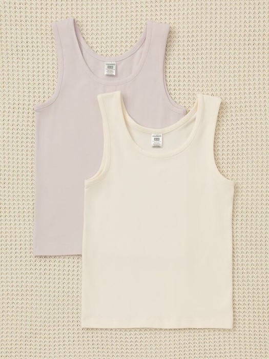 Трикотажные майки в комплекте 2 шт на тонких бретелях из однотонной рибаны, горловина и проймы обработаны кантом, по горловине полочки мережка и атласный бантик. Сохраняют цвет и форму после многократных стирок. Все трикотажные полотна производятся в соответсвии с нормами Швейцарского сертификата ЭкоТекс.