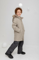Пальто для мальчика с натуральным утеплителем из гипоаллергенного гусиного пуха (70%) и пера (30%). Рекомендованный температурный режим - от -5° до -30°.