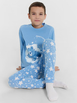 Трикотажная пижама из натурального хлопка. Однотонная футболка с короткими рукавами. Спереди принт. Штаны с набивным рисунком. Эластичные манжеты, цельнокроеный пояс, внутри плоская резинка. Оригинальные принт и набивка выполнены из стойких, гипоаллергенных текстильных красителей. Изделие сохраняет цвет и форму после многократных стирок. Все трикотажные полотна производятся в соответсвии с нормами Швейцарского сертификата ЭкоТекс.