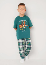 Трикотажная пижама из натурального хлопка. Джемпер с длинными втачными рукавами и брюки с эластичной резинкой в поясе. Мягкие манжеты по низу брюк. Оригинальные набивка и принт выполнены из стойких гипоаллергенных текстильных гипоаллергенных красителей. Изделие сохраняет цвет и форму после многократных стирок. Все трикотажные полотна производятся в соответсвии с нормами швейцарского сертификата ЭкоТекс.