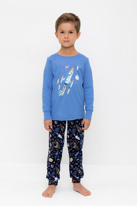 Трикотажная пижама из натурального хлопка. Джемпер с длинными рукавами с эластичными манжетами. У брюк эластичный пояс на резинке. Оригинальная набивка и принт выполнены из стойких, гипоаллергенных текстильных красителей. Пижама сохраняет цвет и форму после многократных стирок. Все трикотажные полотна производятся в соответствии с нормами Швейцарского сертификата ЭкоТекс.