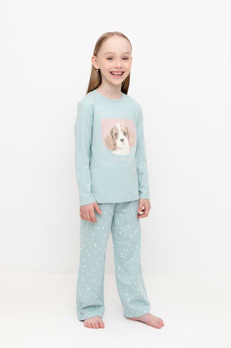 Трикотажная пижама из натурального хлопка. Джемпер с принтом и длинными втачными рукавами. У брюк в комплекте мягкий, эластичный пояс на резинке. Оригинальная набивка выполнена из стойких, гипоаллергенных текстильных красителей. Комплект сохраняет цвет и форму после многократных стирок. Все трикотажные полотна производятся в соответсвии с нормами Швейцарского сертификата ЭкоТекс.
