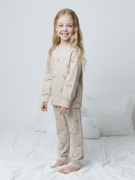 Трикотажный пижамный комплект из петельчатого футера, произведённого из натурального хлопка. У джемпера длинные рукава со спущенными плечами и эластичная мягкая горловина и манжеты. Брюки с удобным поясом на резинке, внизу манжеты. Оригинальная набивка выполнена из стойких, гипоаллергенных текстильных красителей. Все трикотажные полотна производятся в соответствии с нормами Швейцарского сертификата ЭкоТекс.