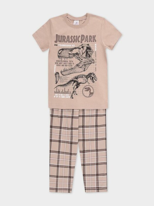 Трикотажная пижама из натурального хлопка. Футболка с короткими втачными рукавами и прямые брюки с эластичной резинкой в поясе. Оригинальные набивка и принт выполнены из стойких гипоаллергенных текстильных красителей. Изделие сохраняет цвет и форму после многократных стирок. Все трикотажные полотна производятся в соответсвии с нормами швейцарского сертификата ЭкоТекс.