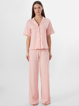 Комплект для комфортного сна и отдыха из трикотажного полотна с набивным рисунком и принтом. Футболка с короткими спущенными рукавами и шорты с мягкой эластичной резинкой в поясе, которые удобно садятся по фигуре. Гладкий материал приятен к телу, не теряет форму и позволяет коже дышать.