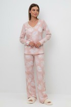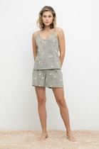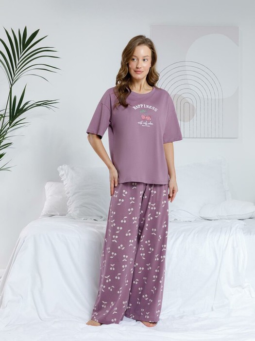 Комплект для комфортного сна и отдыха из гладкого трикотажного полотна. Футболка с короткими спущенными рукавами и прямые брюки с мягкой эластичной резинкой в поясе, которые удобно садятся по фигуре. Лёгкий материал приятен к телу, не теряет форму и позволяет коже дышать. Все трикотажные полотна производятся в соответствии с нормами швейцарского сертификата ЭкоТекс.