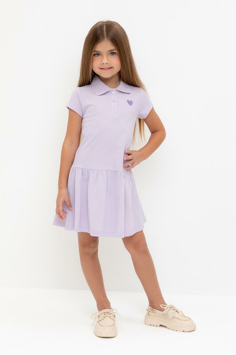 Платье для девочки из высококачественного трикотажа пике с вязаным воротничком. Для удобства одевания платье застёгивается на кнопки спереди. Платье сохраняет форму и стойкий цвет после многочисленных стирок и идеально подходит на каждый день.