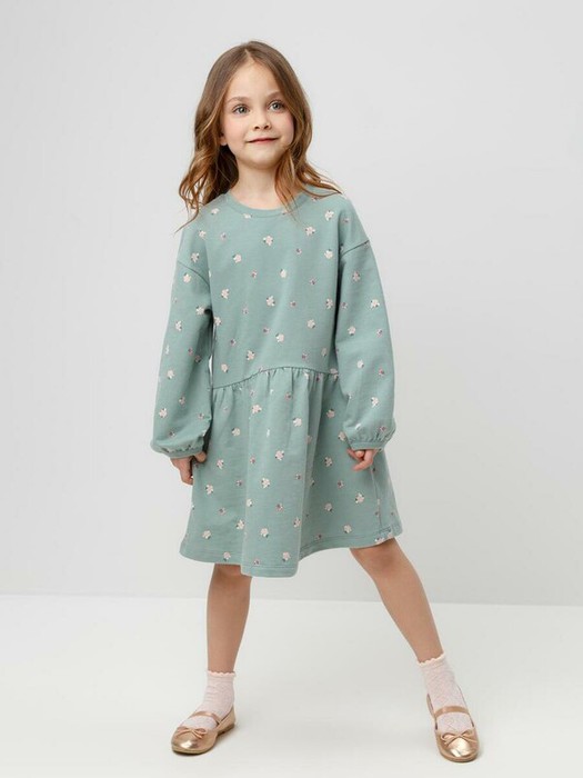 Платье для девочки с длинными рукавами из мягкого петельчатого трикотажа. Для удобства одевания в 98 размере платье застёгивается на кнопки спереди. Платье сохраняет форму и стойкий цвет после многочисленных стирок и идеально подходит на каждый день.