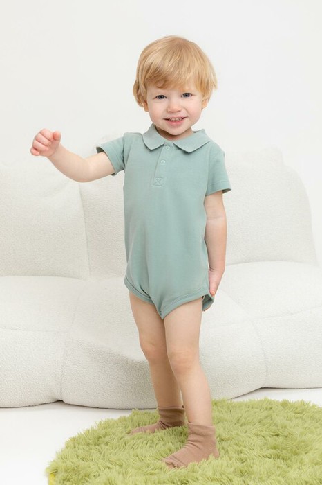 Боди с воротником для мальчика из трикотажного полотна пике. Вязаный воротник. Удобная застежка спереди.