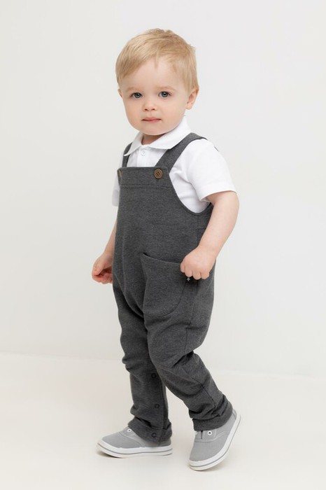 Полукомбинезон детский из меланжевого петельчатого футера. Удобная застежка на лямках. Застежка на кнопки по шаговому шву.