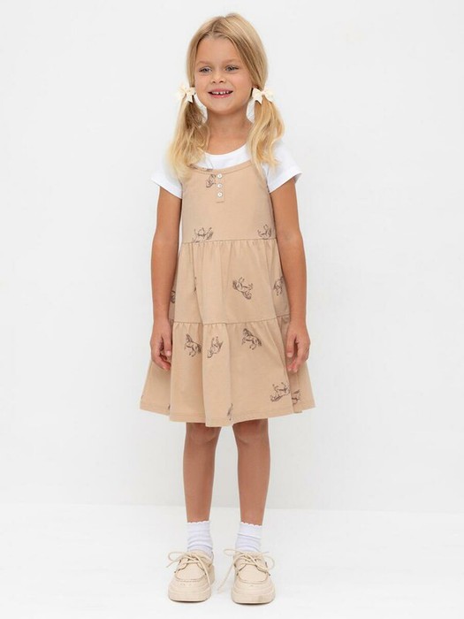 Совместные покупки Магнитогорск Детская одежда Сарафаны — Crockid сарафан для дев КР 5796/нежный бежевый,милые лошадки к567