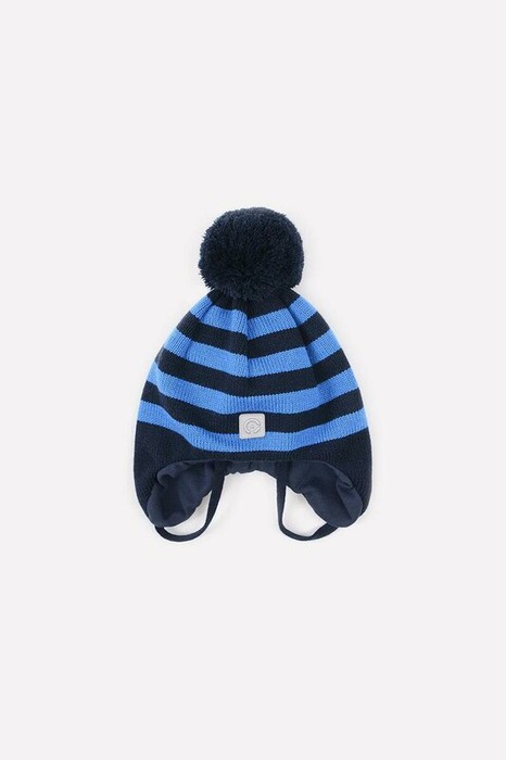 Шапка на завязках с мягким подкладом из интерлока. Подойдёт для прохладного межсезонья и небольших морозов. Украшена вывязанным узором в полоску и помпоном на макушке. Спереди прикреплён светоотражатель, который обеспечивает дополнительную безопасность в тёмное время суток.