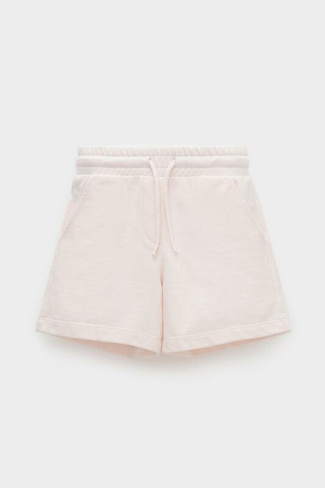 Трикотажные шорты для девочки из петельчатого футера. Эластичный пояс на резинке регулируется по ширине с помощью шнурка, по бокам два удобных кармана.