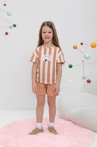 Трикотажные объемные шорты для девочки из набивного петельчатого футера. Пояс по спинке на резинке, по бокам два удобных кармана. Оригинальная набивка выполнена из стойких текстильных гипоаллергенных красителей.