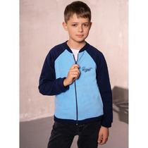 Трикотажная куртка для девочки из петельчатого футера трехнитки. По бокам выполнены карманы, манжеты и пояс из эластичного трикотажа в рубчик. На груди аппликация из страз