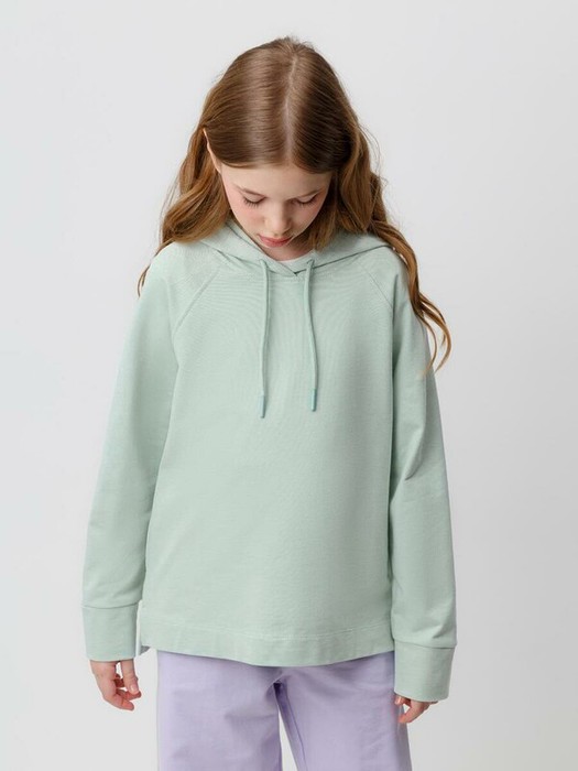 Толстовка однотонная с капюшоном и боковыми карманами из петельчатого футера. Рукава реглан, манжеты из основного полотна. Свободный силуэт. Все трикотажные изделия производятся в соответствии с нормами Швейцарского сертификата ЭкоТекс.