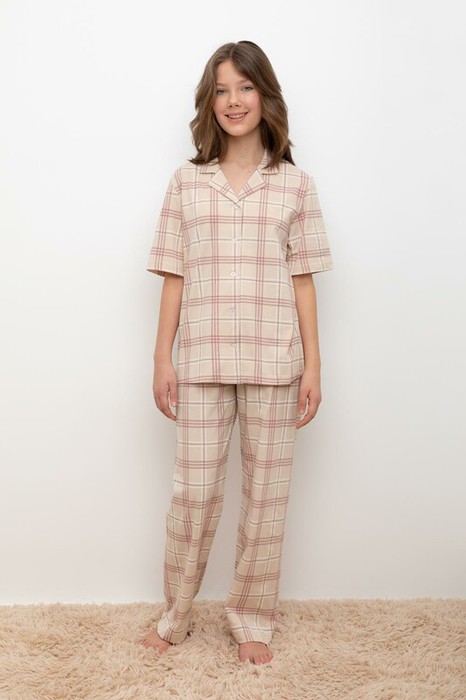 Cubby пижама для дев КБ 2829/бежевый,текстильная клетка