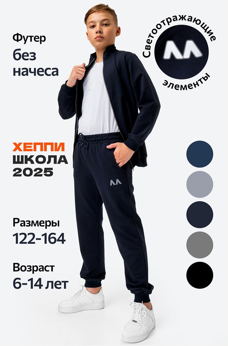 Комфорт в каждом движении! Детский спортивный костюм с брюками для мальчиков и девочек выполнен из плотного футера двухнитки. Толстовка с застежкой на молнию, мягкие манжеты и светоотражающие элементы делают синий костюм для детей и подростков стильным и практичным.