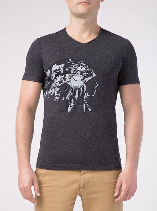 Футболка из мягкого хлопка с принтом и V-образным вырезом горловины станет основой для индивидуальных образов.