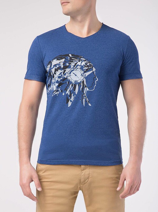 Футболка из мягкого хлопка с принтом и V-образным вырезом горловины станет основой для индивидуальных образов.