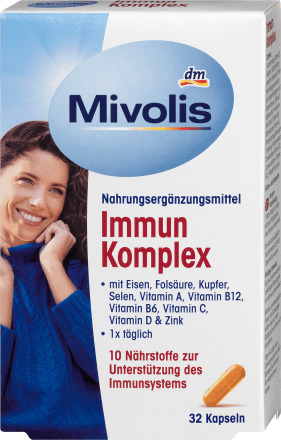 Иммунный комплекс Миволис поддерживает защитные силы организма. Формула содержит десять микроэлементов для иммунной системы. Железо, фолиевая кислота, медь, селен, витамин А, витамин В12, витамин В6, витамин С, витамин D и цинк не только помогают поддерживать иммунную систему, но и выполняют различные задачи в организме. - Железо способствует образованию эритроцитов, а фолиевая кислота способствует кроветворению. - Медь поддерживает транспорт железа. - Витамин А поддерживает метаболизм железа. - Витамины B6 и B12 способствуют нормальному энергетическому обмену. - Витамин С поддерживает иммунную систему даже во время и после интенсивных физических нагрузок**. - Витамин D поддерживает поддержание костей и работу мышц. - Селен и цинк помогают защитить клетки от окислительного стресса. ** Положительный эффект возникает, если принимать 200 мг в дополнение к эталонной питательной ценности витамина С (= 80 мг).