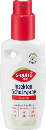 Спрей от насекомых от S-QUITO free содержит проверенный активный ингредиент Икаридин (Салтидин) и защищает от комаров до восьми часов и клещей до десяти часов. Надежная защита от укусов насекомых и клещей.