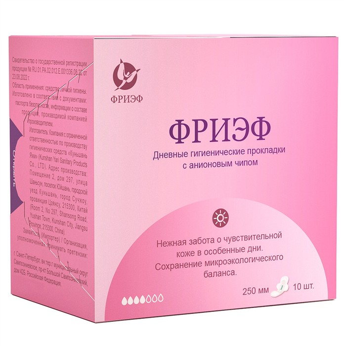 Дневные гигиенические прокладки с анионовым чипом. "Фриэф", 250 мм, 10 шт