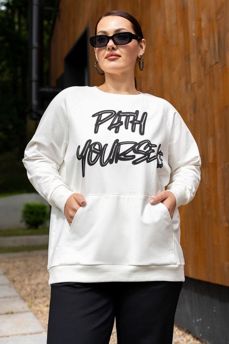 Джемпер прямого кроя с дизайнерской печатью, полочка с накладным карманом.Джемпер с притачными рукавами и манжетами.