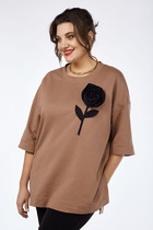 Джемпер прямого силуэта с разрезами в боковых швах. V-образный вырез горловины удлинит шею и визуально вытянет силуэт. Рукав втачной длинный со спущенной линией плеча, по низу рукава сборка и притачная манжета. По низу переду выполнена декоративная надпись.