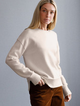 Футболка прямого свободного кроя с удлинённым рукавом. Выполнена из хлопковой ткани бежевого цвета. Вырез горловины круглый. Рукав втачной, спущенный. Изнутри втачан рукав из ажурной ткани. Длина рукава от линии втачивания 14,5 см, 51 см. Длина спинки 68 см