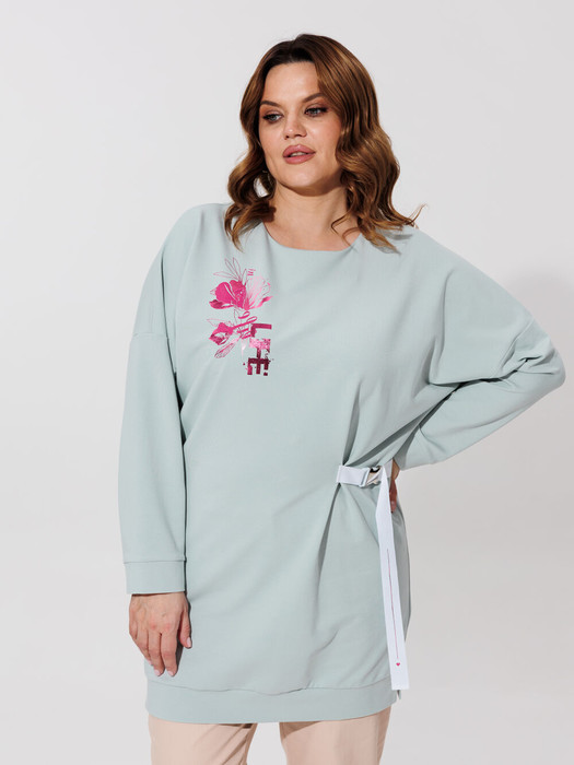 Комфортная туника с оригинальным кроем разнообразит ваш  и повседневный гардероб. Туника женская  c декоративным поясом позволит создать элегантный образ.  Женская туника свободного кроя с классическим круглым вырезом,по переду расположен дизайнерский принт. Рукава в фасоне «летучая мышь» Туника женская больших размеров с длинным рукавом слегка заужена к низу. Притачным манжетом обработаны рукава и свитер-туника. Декоративный пояс с спряжкой .Туника трикотажная женская застегивается потайной молнией, вшитой в спинку. Однотонная туника женская с длинным рукавом сочетается с брюками, джинсами, пиджаками и верхней одеждой.