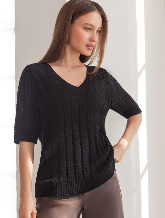 — Джемпер фактурной вязки из хлопка с кашемиром