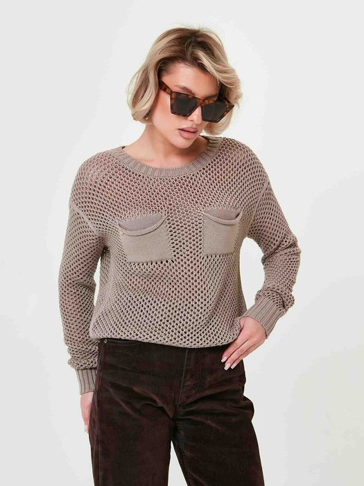 Свободный летний джемпер из хлопка прямого силуэта длиной до линии бедра (при росте 170 см). Рукав прямого покроя стандартной длины. Вырез свободный круглый расширенный. Линия плеча уведена на деталь спинки.