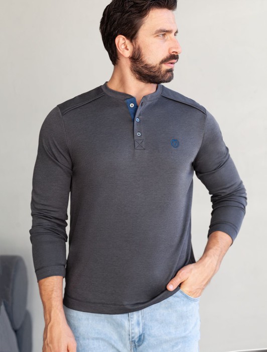 Совместные покупки Магнитогорск Мужская одежда Футболки — Джемпер хенли из полотна пике с меланжевым плетением с эластаном