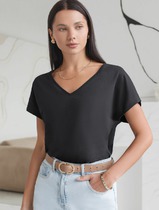 Vilatte Футболка с V-вырезом и цельнокроеным рукавом из премиального хлопка D49.